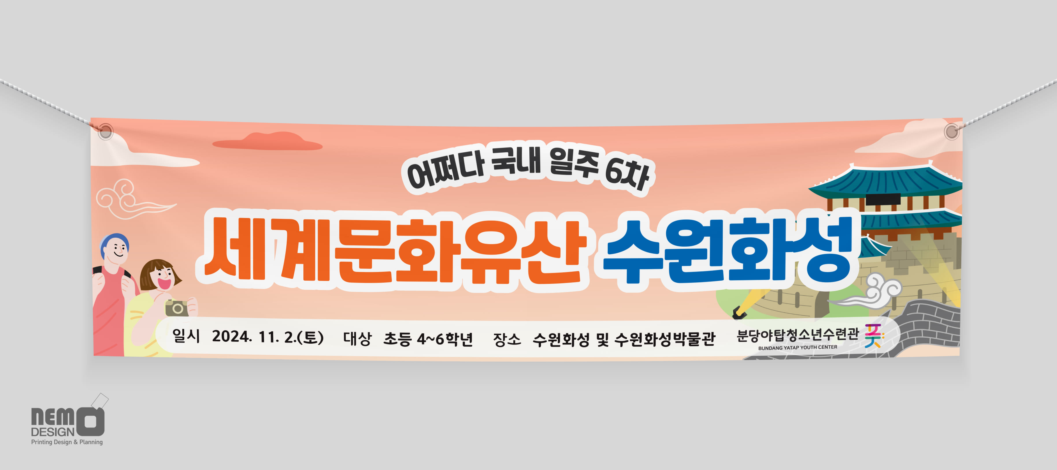 야탑유스센터 현수막 본 블로그의 모든 이미지의 사용 저작권은 네모디자인 www.nemodesign.net 에 있습니다.사전 동의 없이 무단 복제 및 사용을 금지합니다. 항상 최고의 디자인만을 고집하는 네모디자인입니다.네모 디자인 홈페이지에서 접수를 도와드릴수 있습니다.^^www.nemodesign.net 상담문의 031-754-6293 NEMO PORTFOLIO/현수막 2025.07.29
