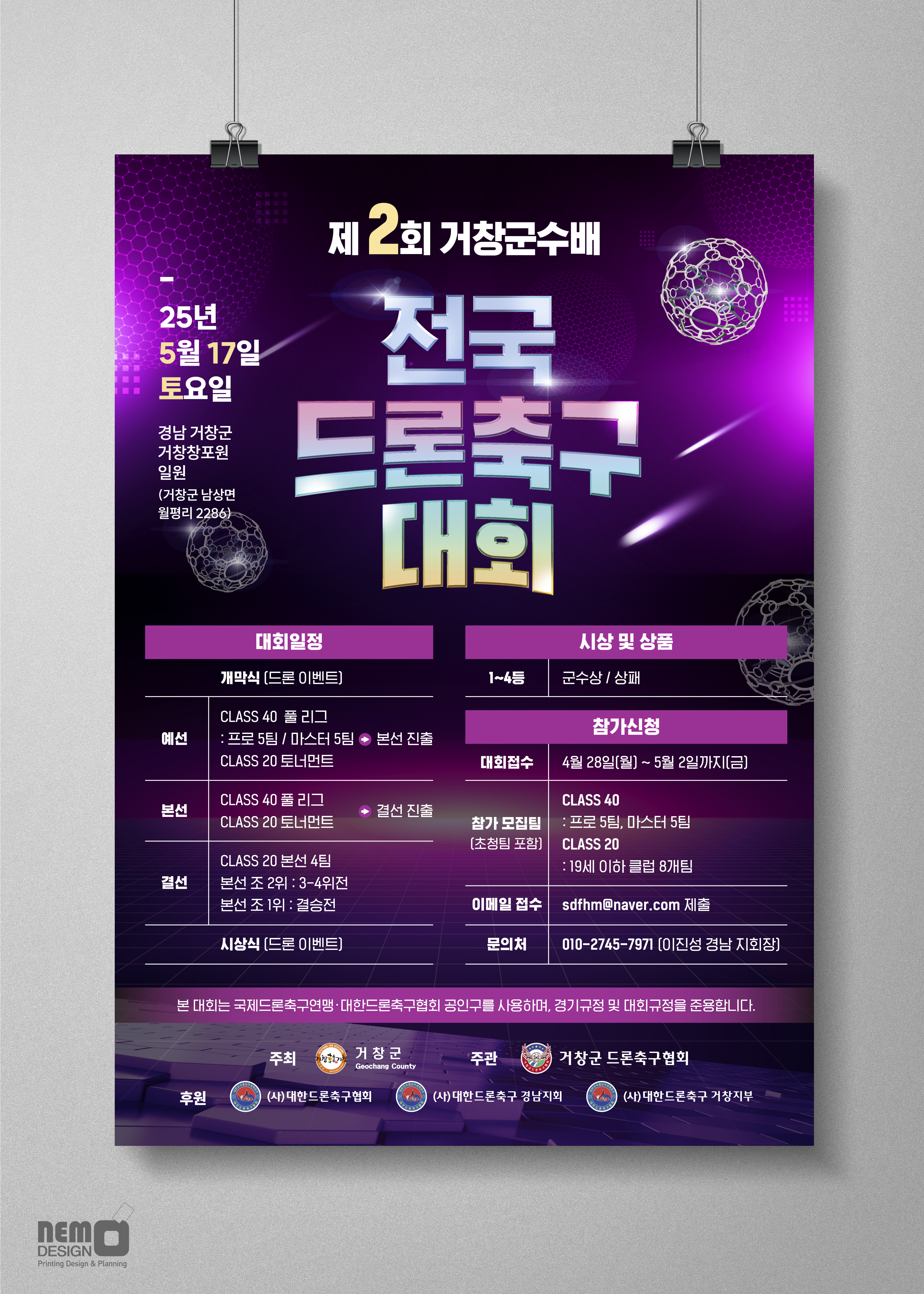 거창군드론축구협회 포스터 본 블로그의 모든 이미지의 사용 저작권은 네모디자인 www.nemodesign.net 에 있습니다.사전 동의 없이 무단 복제 및 사용을 금지합니다. 항상 최고의 디자인만을 고집하는 네모디자인입니다.네모 디자인 홈페이지에서 접수를 도와드릴수 있습니다.^^www.nemodesign.net 상담문의 031-754-6293 NEMO PORTFOLIO/포스터&POP 2025.05.20